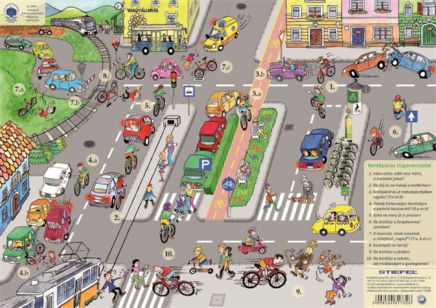 A maga nemében rendkívüli, hazánkban eddig soha nem látott termék a „Kerékpáros túlélés tízparancsolata”, amely hasznos útmutatásul szolgál nemcsak a diákok,  hanem az égbe szökő benzinárak miatt, vagy az egészségük megőrzése céljából kerékpárra „pattanó” idősebb korosztály számára is: egyik oldalán bemutatja a KRESZ legfrissebb és hatályos rendelkezései alapján a kerékpár kötelező felszerelését (amelynek bonyolultságával kapcsolatban napjainkban is számos tévhit kering), a kerékpáros nem kötelező, de ajánlott felszereléseit (mint például a bukósisak, vagy egy jó kerékpárlakat), a leggyakoribb útjelzőtáblákat, amelyekkel egy kerékpáros találkozik, sőt, azt is, hogy a városi forgalomban az autókhoz viszonyítva lehetőség szerint hol kell közlekednie a kerékpárosnak, hogy mindig jól látható maradjon. Azonban az igazi szenzációt a könyöklő másik oldalán láthatjuk: egy madártávlatból nézett, Deák Kázmér grafikusművész tollából származó, élethűen, ám humorosan megrajzolt várost, amelyben a kerékpárosokra nézve tíz legveszélyesebb szituációt ábrázoltuk, a könyöklő sarkába kerülő magyarázatokkal, avagy a „kerékpáros túlélés tízparancsolatával”. Az a biciklis, aki betartja a könyöklőnk útmutatásait, – legalább is saját hibájából – bizonyára soha nem kerülhet bajba!