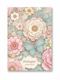 Színes, fóliázott papírborítású diáknaptár fiatalos mintákban.